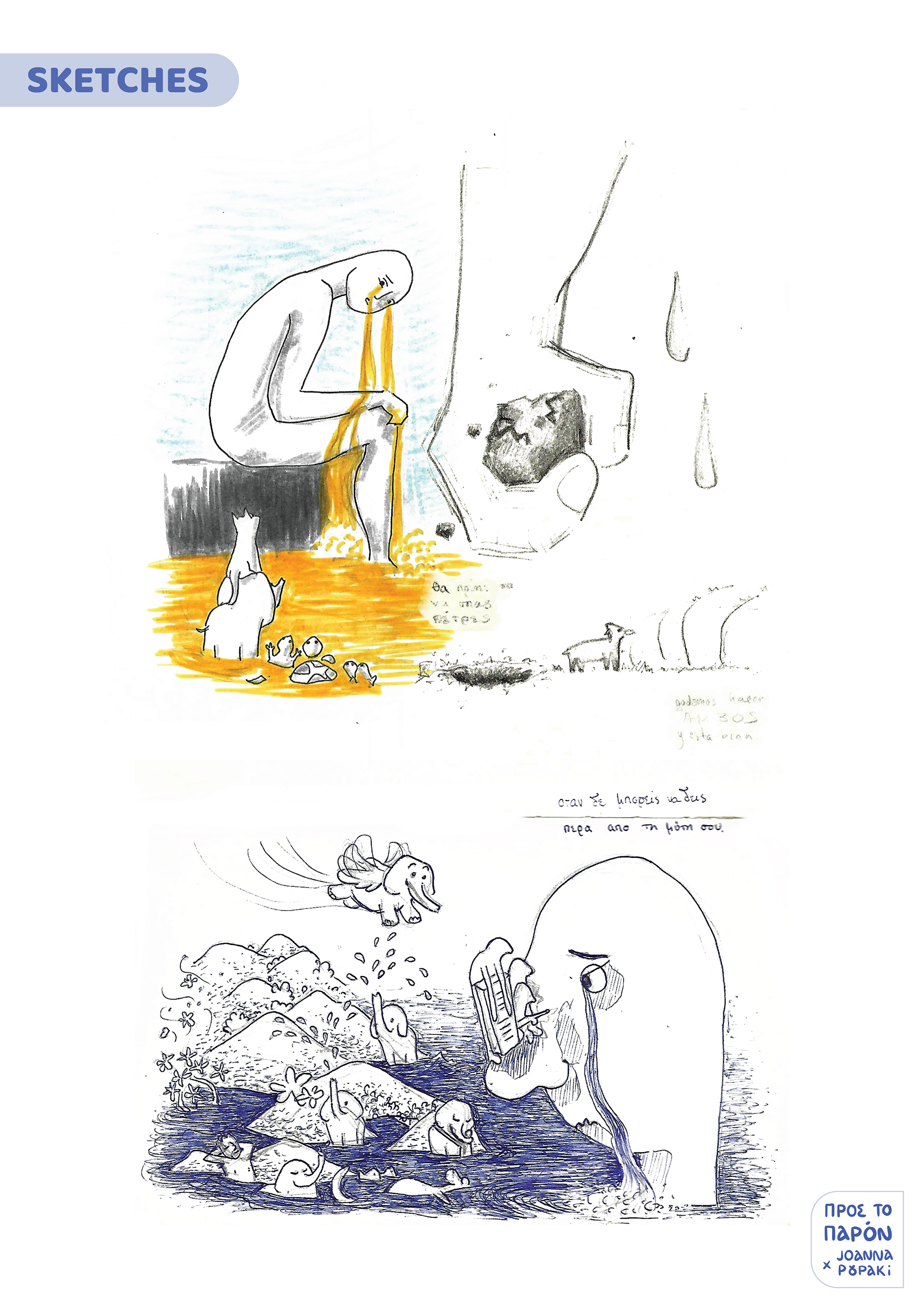 An animated interpretation of the same-titled song “Προς το Παρόν” (Pros to Parón) in Greek, by the Greek music group Skiadareses, that awakens many emotions. Emotions of love-hate, of loss and nostalgia. Drowning in one's own thoughts and tears, and at the same time finding the embrace of a friend and hope.